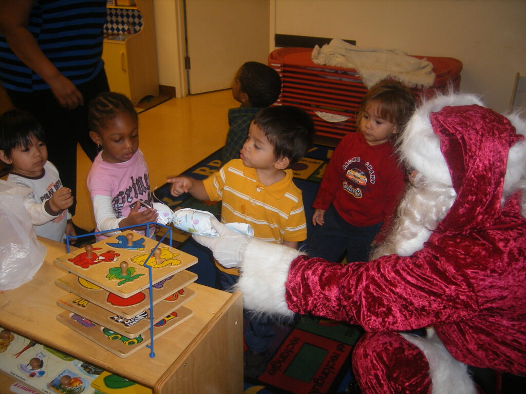 After a little while everyone was gathered into one classroom where each kid gets to sit up on Santa’s lap and have their picture taken while they get a gift, courtesy of The USA Today/Gannett Company Inc. Giving Tree Program. In addition to a gift for each child, the program also provides a full Christmas for one needy family. Mr. Colella captures all of this on film, and has photos professionally printed and delivered to each child. It was a genuinely heart-warming event and even though Christmas isn’t my holiday, I left the center that day truly feeling the Holiday Spirit.