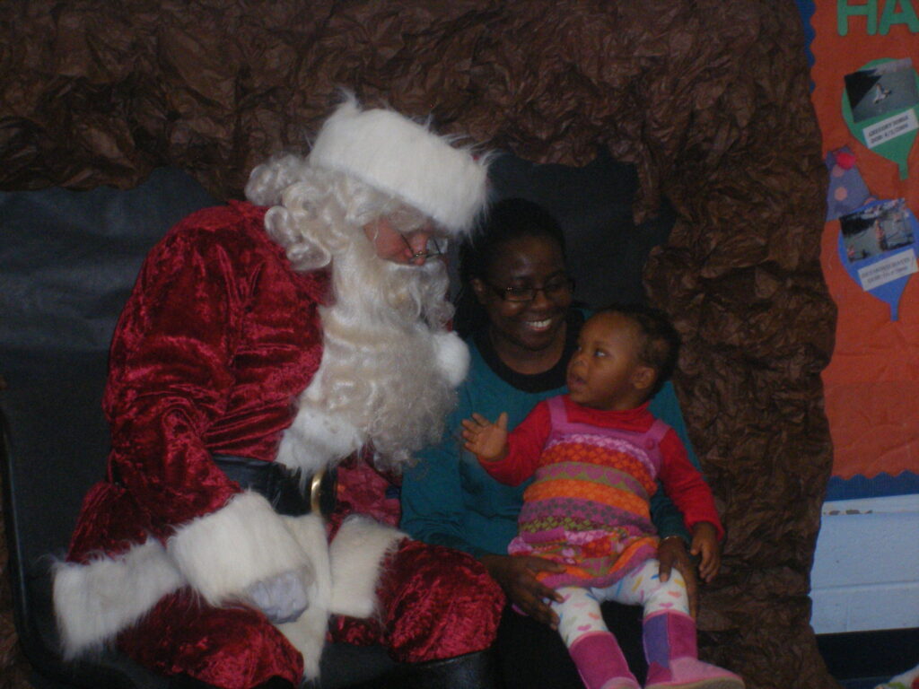 Most importantly, at least for the day of Santa’s visit, the center has a long standing relationship with Micheal Colella, a professional photographer who donates his time and services, and brings along his good buddy Santa Claus. Santa made his rounds to each of the classrooms, which was really one of the cutest things I have seen in a long time. A few of the little ones were a bit scared of him at first, clinging to their teachers’ (and even my) legs and slowly inching their way forward to accept a present, or give Santa a high five. The big kids couldn’t wait – and literally jumped on him when he walked through the door. Some of them even tried to give him classroom toys as gifts!