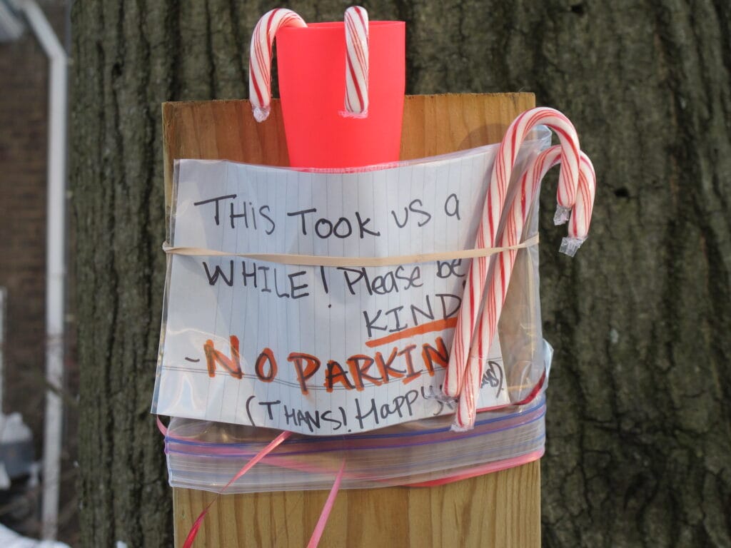 This was one of the nicest signs I saw saving a parking spot (from Mt. Pleasant). And a nice consolation is offered: