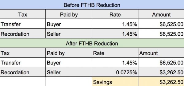 The actual savings will depend on the sales price but let’s look at an example of a property with a sales price of $450,000.