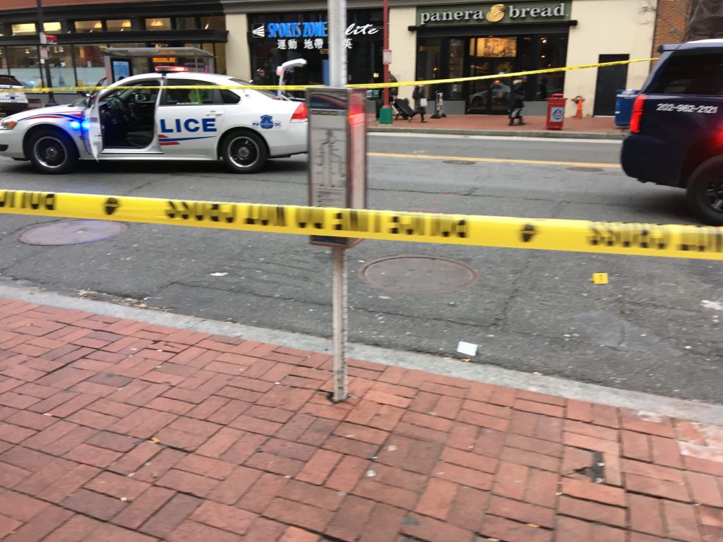 “Tons of police cars, H St shutdown, cops marking off casings on the street…”