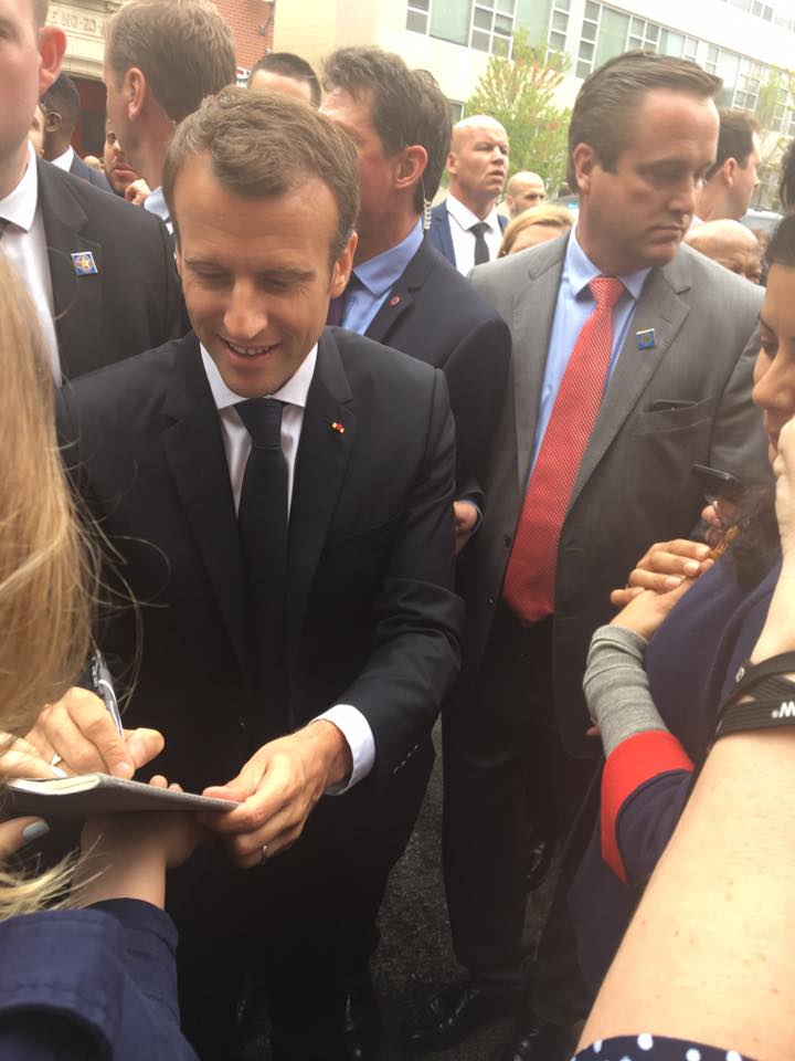 “Just saw what appears to be President Macron’s vehicle and security team park at Tonic on GW’s campus. Reportedly he’s having lunch there.”