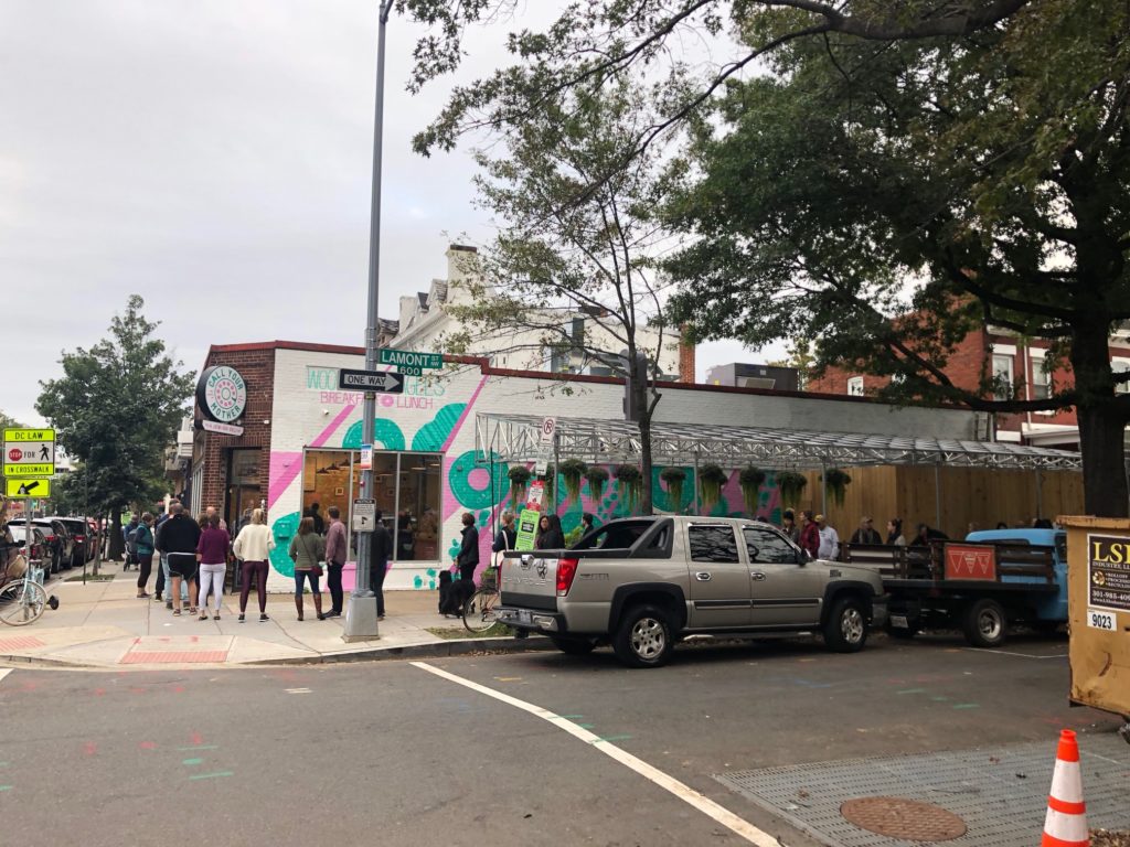 Thanks to Matt for sending Saturday morning: “The line at 8:05 (they open at 8).”