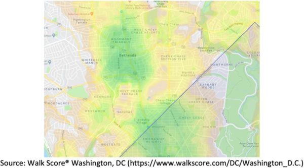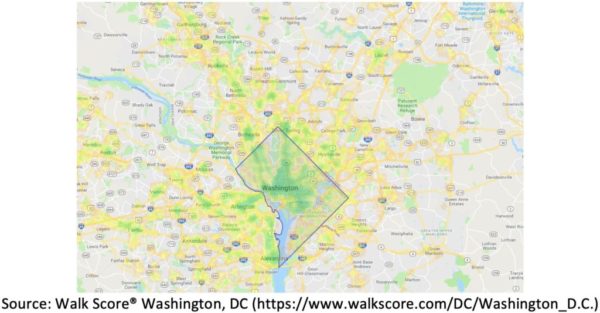 At the national level, D.C. is considered one of the more walkable cities in the country, however as we zoom in on a closer scale, we can see that this is a very broad generalization for a metropolitan area with a wide variety of walk scores among its neighborhoods.