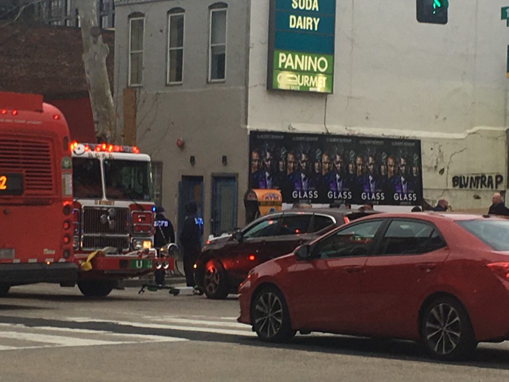 Looks like someone on a scooter got hit – lots of police and ambulance presence at 14th and W now – I hope whoever it is is ok!”