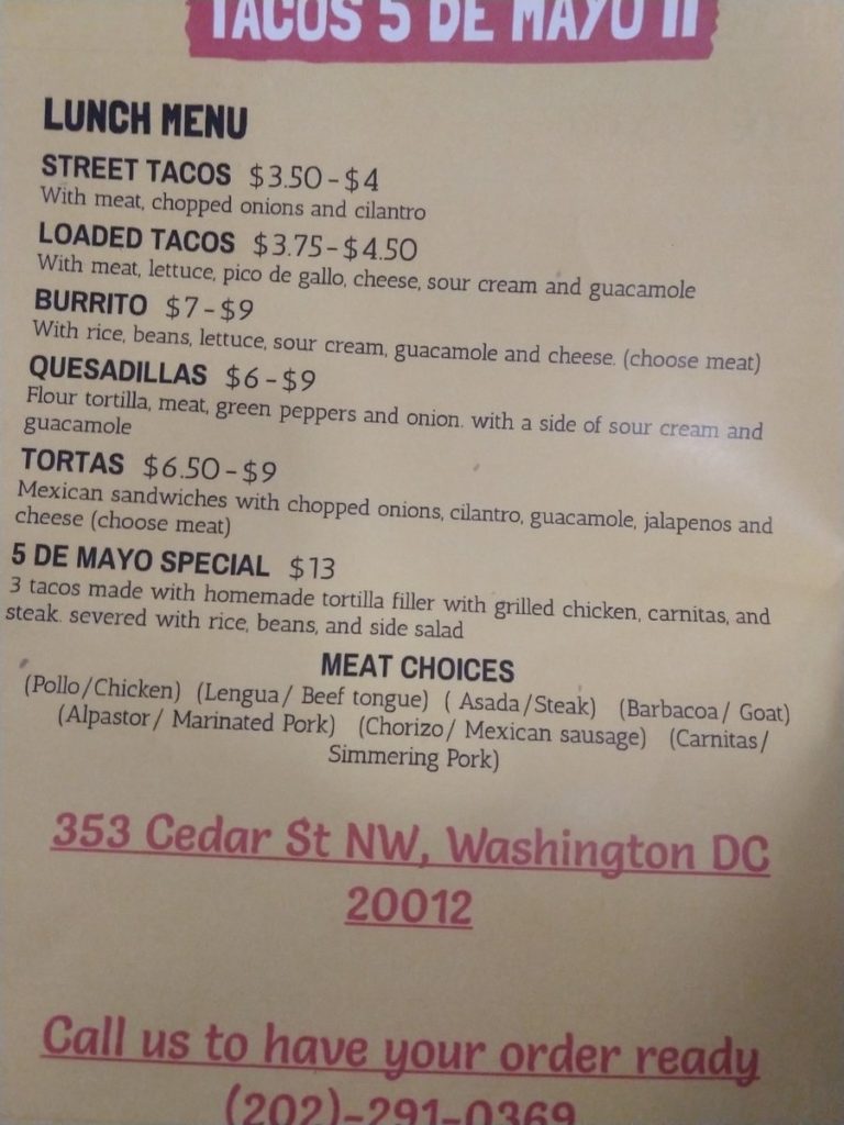 “It is run by Tacos 5 De Mayo. They are running a simplified lunch menu in the evening with a salsa bar.”