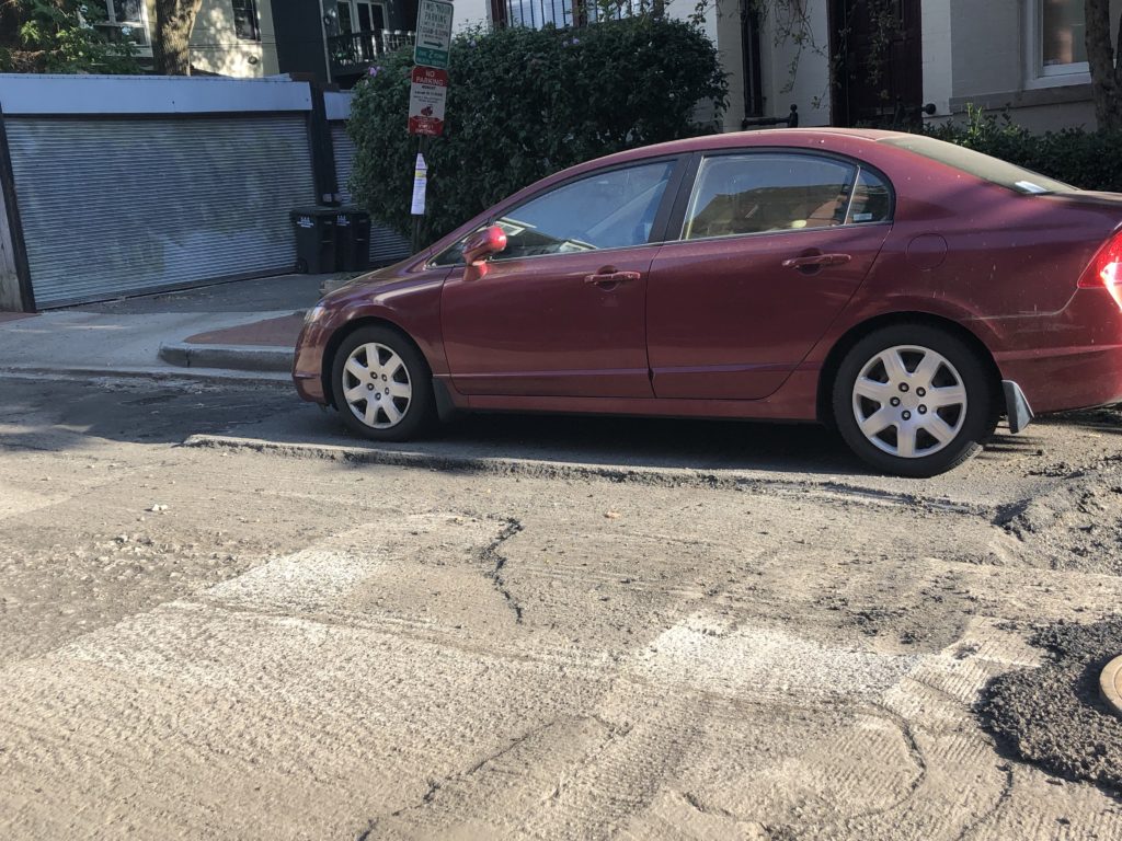 “They are repaving swann between 16 and 17 NW. Today was dig up the road day. This car didn’t move and instead of towing it they just left the car on its own little piece of street and dug around it. It doesn’t even have tickets on it! How do I get this treatment? If I am 2 min late for street cleaning, my cars already been towed 3 blocks away.”