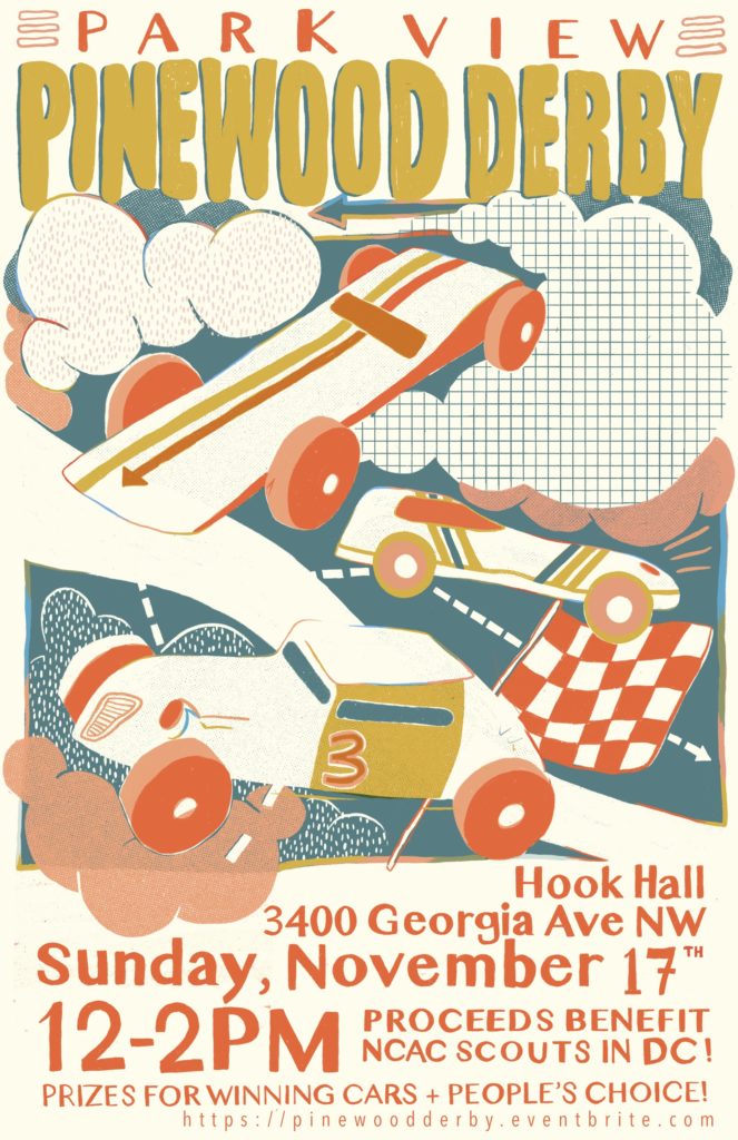 “Join us for the inaugural Park View Pinewood Derby. A Pinewood Derby is a racing event for unpowered, unmanned, handmade miniature cars. Traditionally just for kids, this is a Pinewood Derby for all ages – young and young at heart! Buy a kit, design and craft your car, and bring it to compete on our race track! We’ll have prizes for the fastest cars as well as People’s Choice awards for most the most creative design.