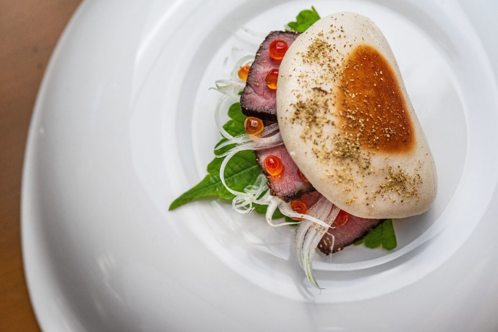 D.C.-based architecture and design firm //3877 collaborated closely with Moncayo and his team to turn the 12,000-square foot space into a restaurant that reflects the chef’s cooking heritage and accomplishments. Inspired by the compositional beauty and colors of Moncayo’s culinary creations, as well as his Spanish and Japanese influences, the restaurant’s design is defined by its understated but warm elements; dark textures, polished metals, dramatic lighting, and sweeping architectural features that double as art installations and guides through the space. Favoring a Japanese aesthetic — with nods to the restaurant’s namesake — //3877 created mini ‘destinations’ from the entry, past the bar, and into the dining areas, creating the backdrop for a variety of culinary experiences wherever patrons are in the restaurant.