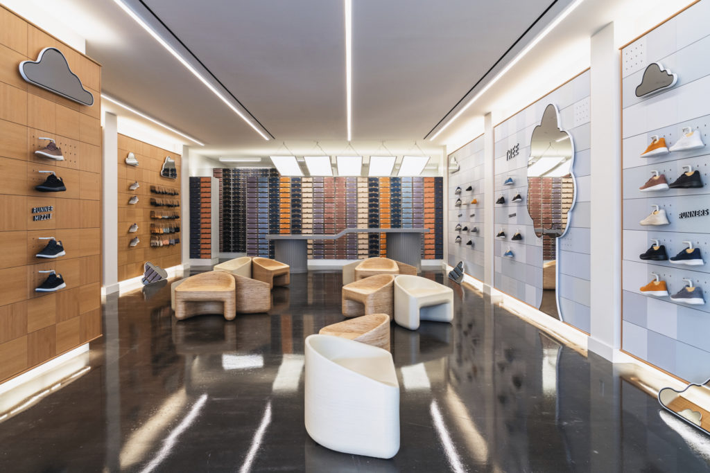 · Displays in the windows and throughout the store highlight the premium natural materials used in Allbirds’s sustainable products and add an element of consumer education.”