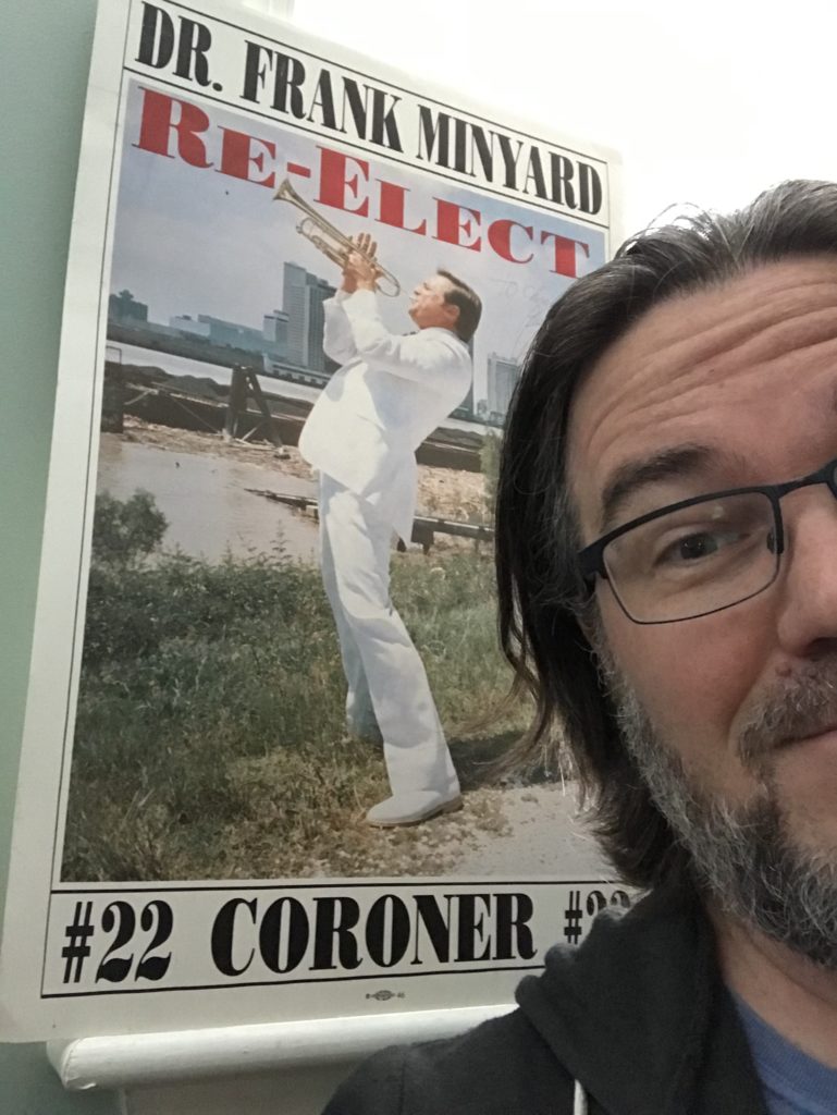 “From living in New Orleans, our politicians always had funny election posters. I did photography work for the Coroner’s office and this poster is signed by Dr Minyard.”