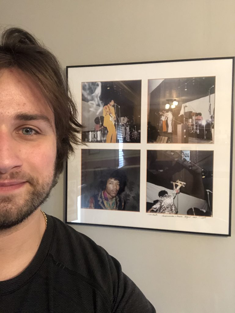 “Jimi Hendrix – 1967- Ambassador Theater on 18th St. These are pictures that were taken of him by a friend with a connection back then. Tickets were $2.50.”