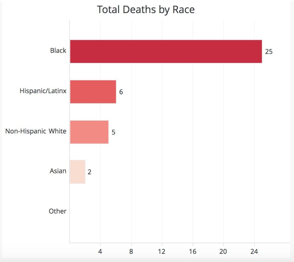 The District reported nine additional COVID-19 related deaths: a 57-year-old female, a 59-year-old female, a 67-year-old female, a 72-year-old female, a 73-year-old female, a 76-year-old male, a 77-year-old male, an 80-year-old male, and a 95-year-old male. Tragically, 47 District residents have lost their lives due to COVID-19.”