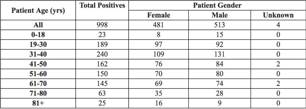 Below is the District’s aggregated total of positive COVID-19 cases, sorted by age and gender.”