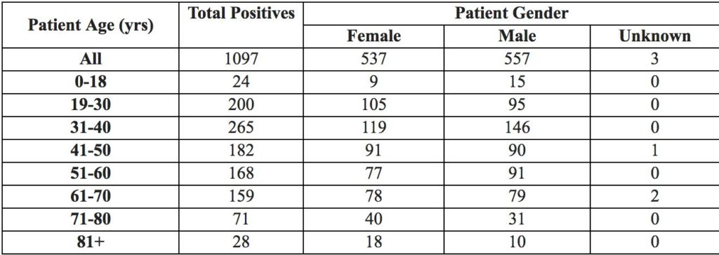 April 5 Coronavirus Data Posted – Total positives: 1097