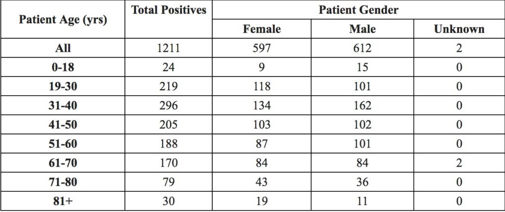 Below is the District’s aggregated total of positive COVID-19 cases, sorted by age and gender.