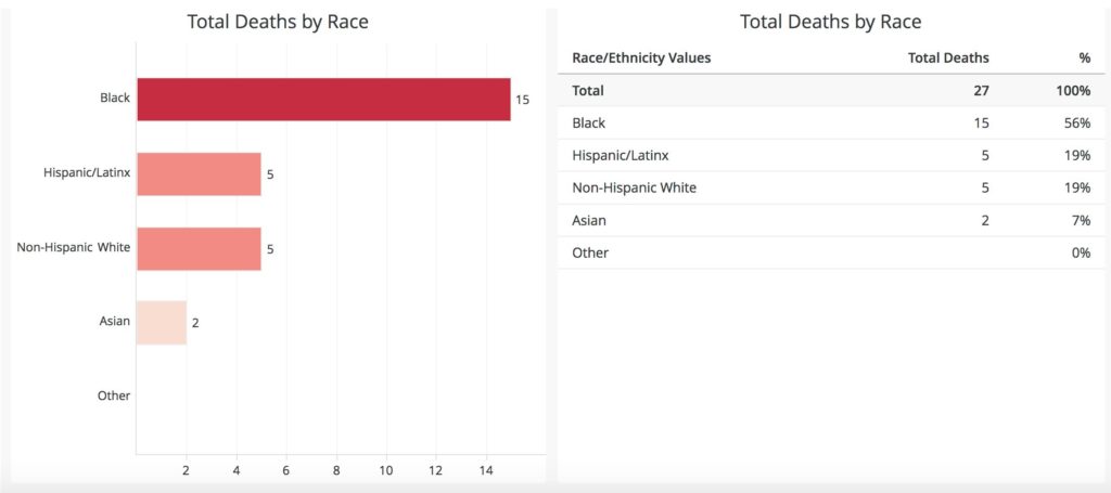 The District reported five additional COVID-19 related deaths: a 52-year-old male, a 61-year-old female, a 68-year-old female, a 79-year-old female, and a 97-year-old female. Tragically, 27 District residents have lost their lives due to COVID-19.”