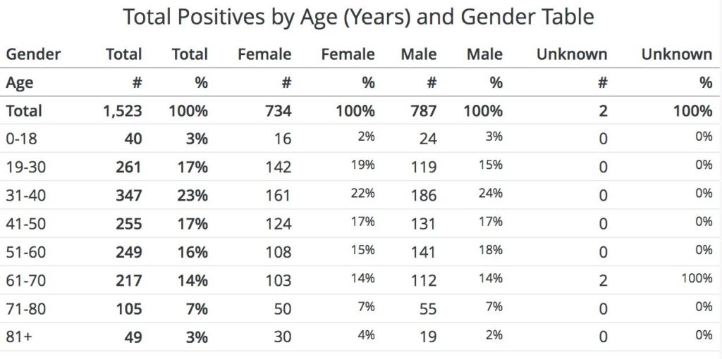 April 9 Coronavirus Data Posted – Total positives: 1660
