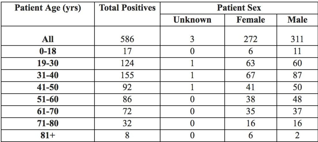 Below is the District’s aggregated total of positive COVID-19 cases, sorted by age and gender.