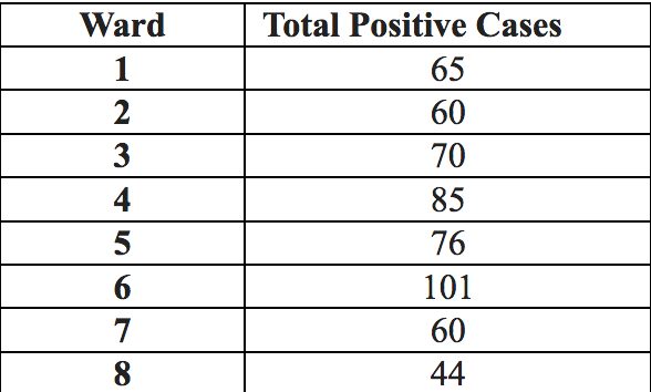 Below is the District’s aggregated total of positive COVID-19 cases, sorted by ward.