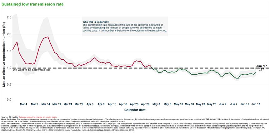 The District’s data shows a sustained transmission rate of .87. That data is represented in the chart below.