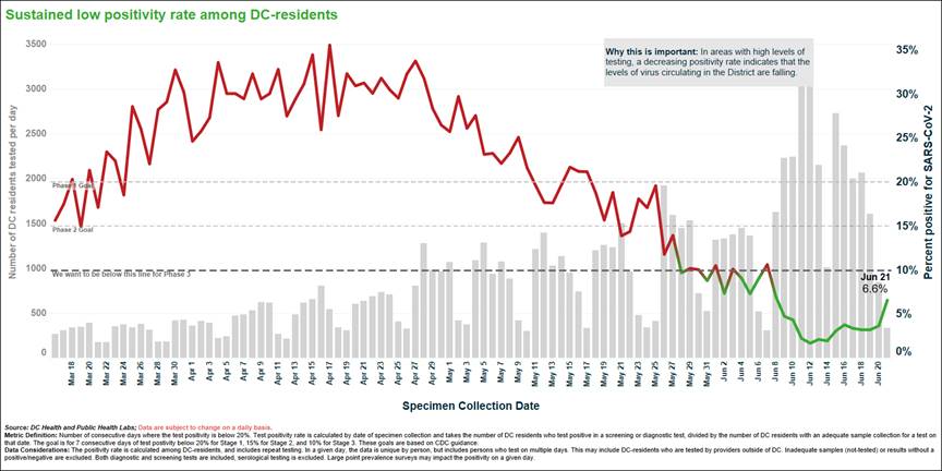 The District’s data shows a positivity rate of 6.6% among residents. That data is represented in the chart below.