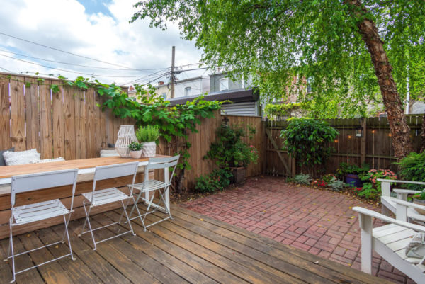 Original hardwoods, exposed brick, custom moldings and other period details pair seamlessly with modern conveniences like central air w/Ecobee thermostat. An updated galley kitchen with custom oak shelves and a pantry leads you out to a delightful back patio. Enjoy summer nights in your own little outdoor oasis that includes a back deck with built-in seating/storage and the flexibility and low maintenance offered by proper hardscaping.