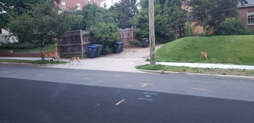 And thanks to Zoe for sending “Mama deer and 3 babies off of 31st NW”