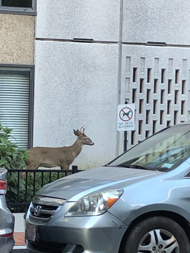 Thanks to Laura for sending the deer: “Spotted crossing 15th in front of some petrified drivers before stopping to evaluate this rude sign. A rule breaker but per animal control he is in good health and should be allowed to carry on with his walk.”