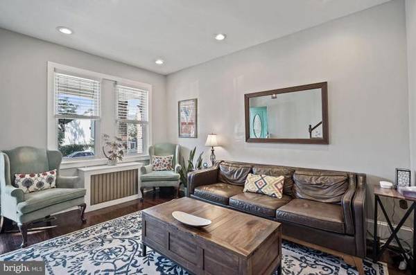 Enjoy cooking and dining in our partially open concept kitchen with granite countertops and updated stainless steel appliances. The kitchen includes a large french door refrigerator with ice maker and a gas cooking stove. The 42-inch cabinets with crown molding, roll-out shelves, and built-in wine rack give you ample space to store food and cooking equipment. Original hardwood floors and high ceilings throughout the main level.