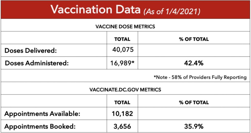 “The District’s reported data for Sunday, January 3, 2021 includes 140 new positive coronavirus (COVID-19) cases, bringing the District’s overall positive case total to 29,904.