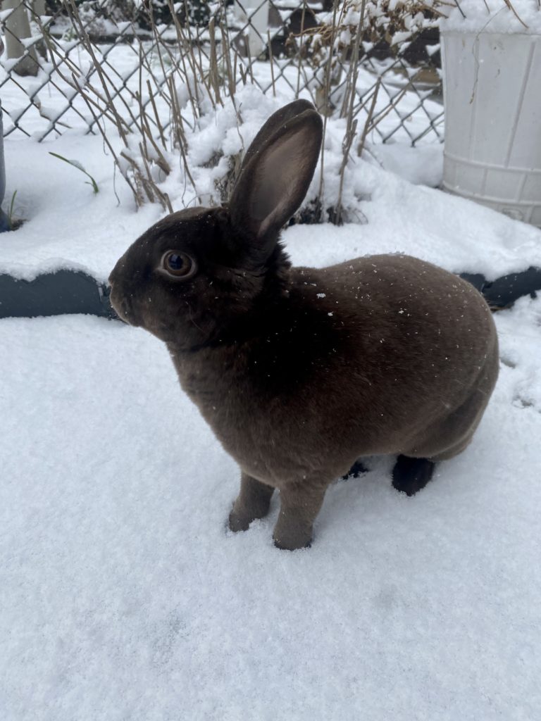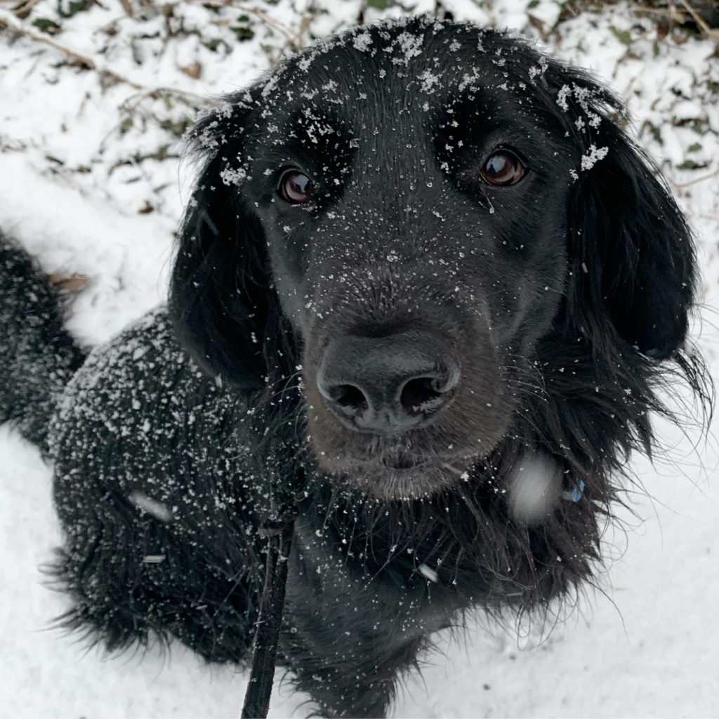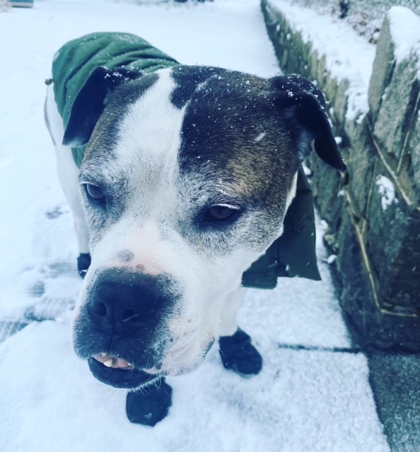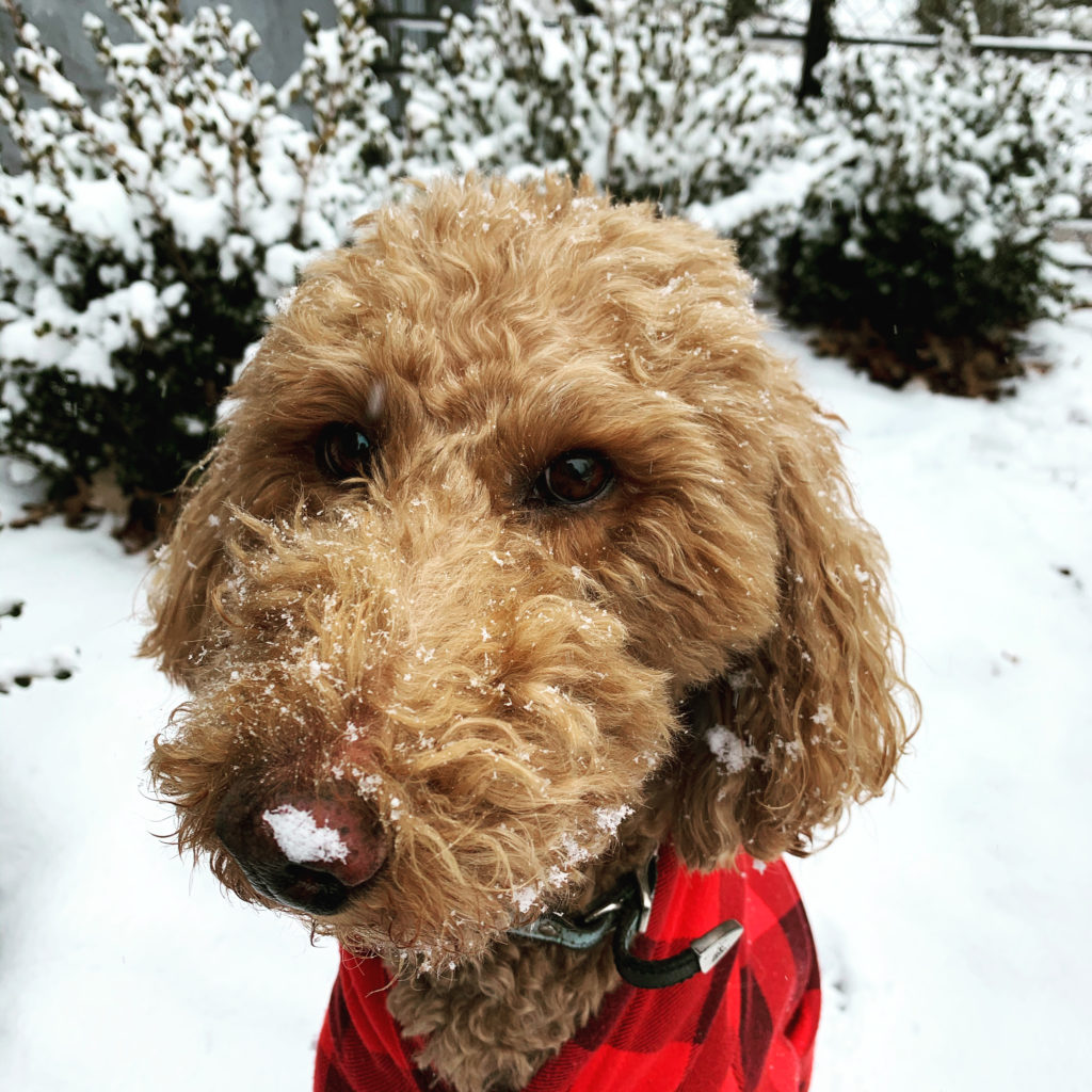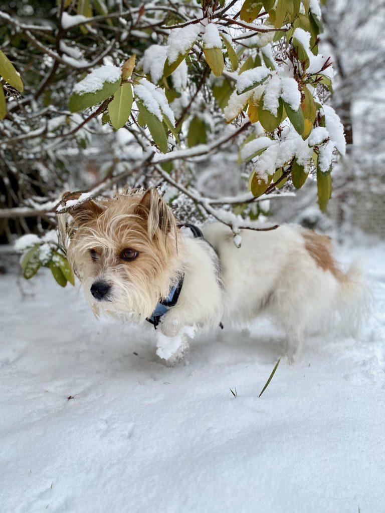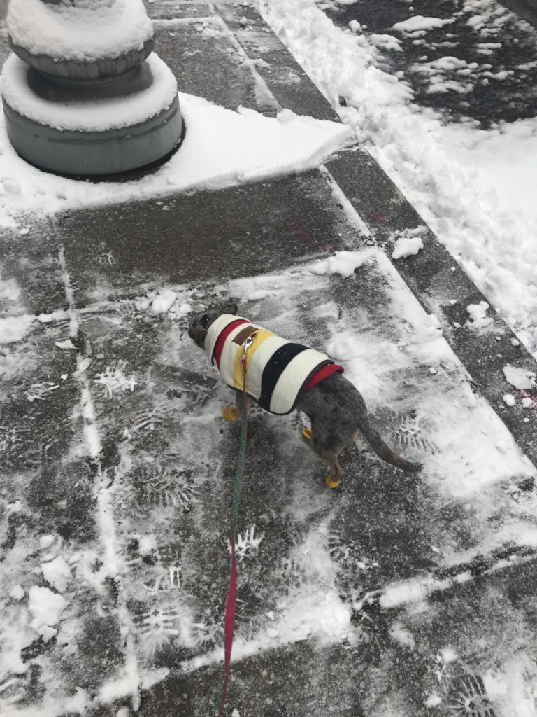 “Sammy from Kalorama during his first snow as a quaran-pup”