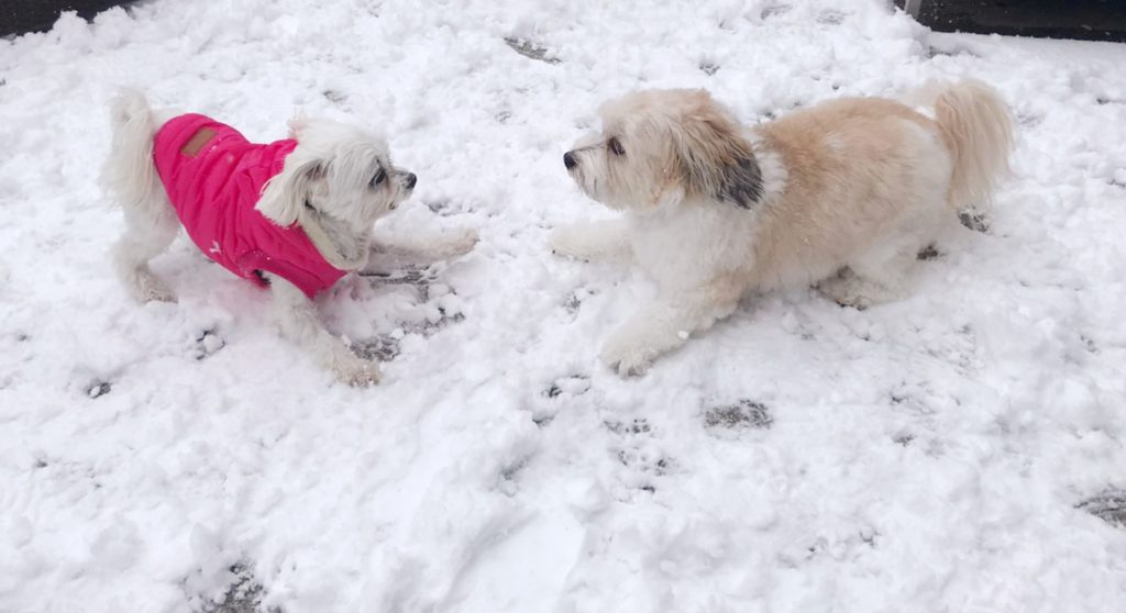 “Best buds Cricket and Honey enjoying the snow in Mt. Vernon Triangle!”