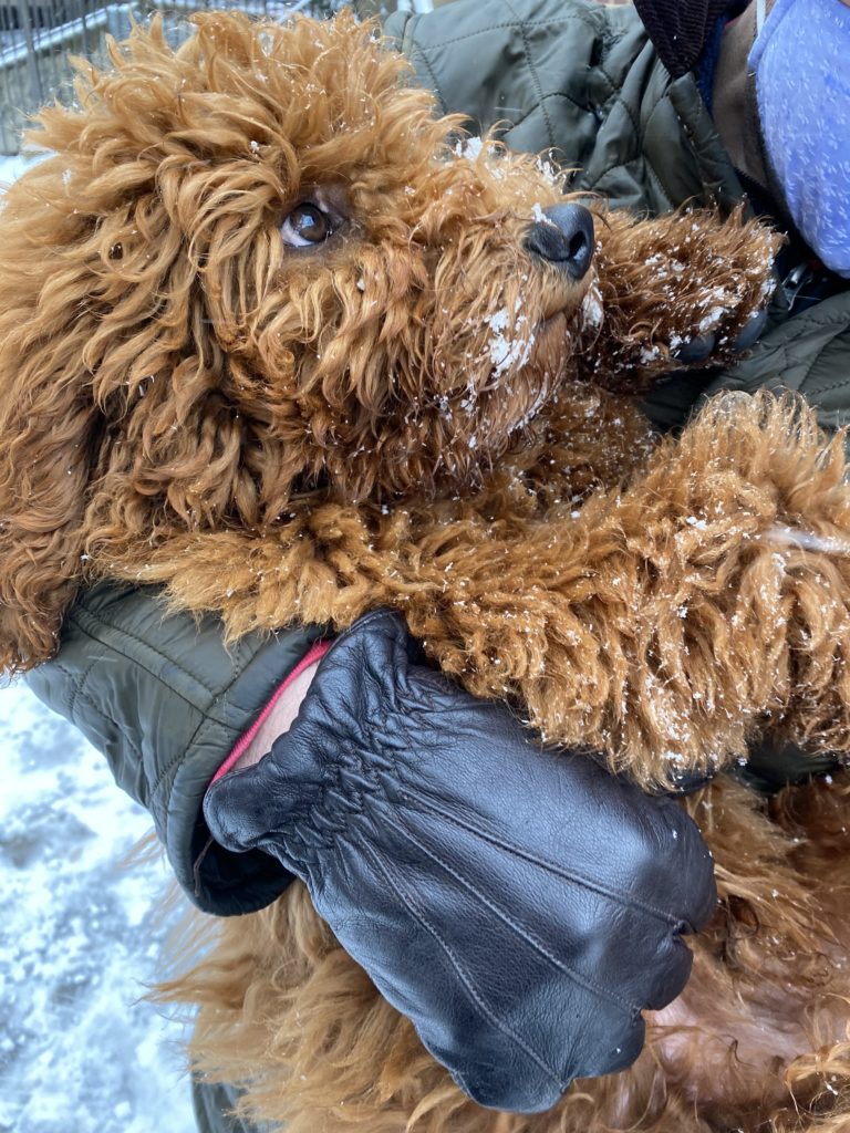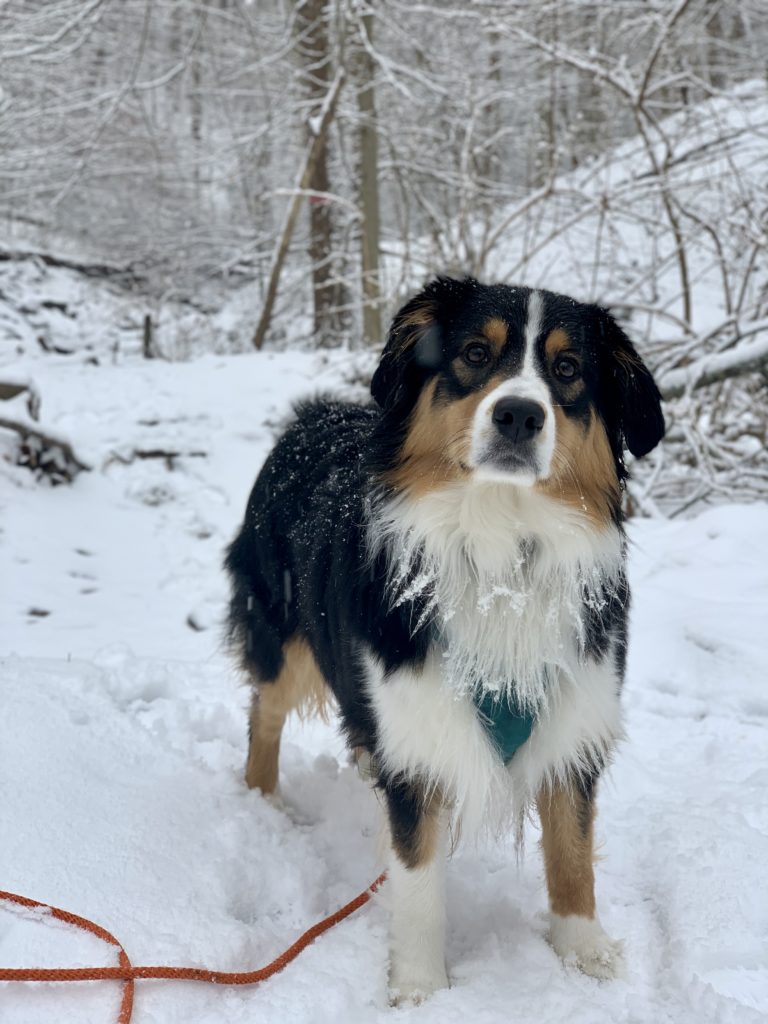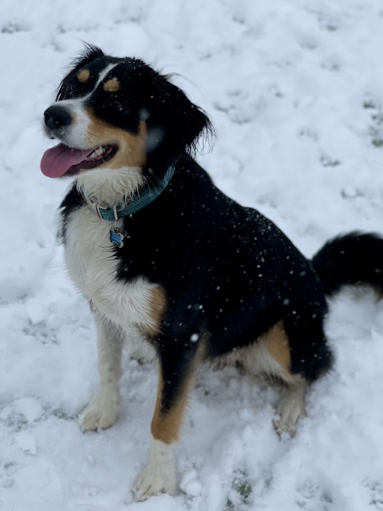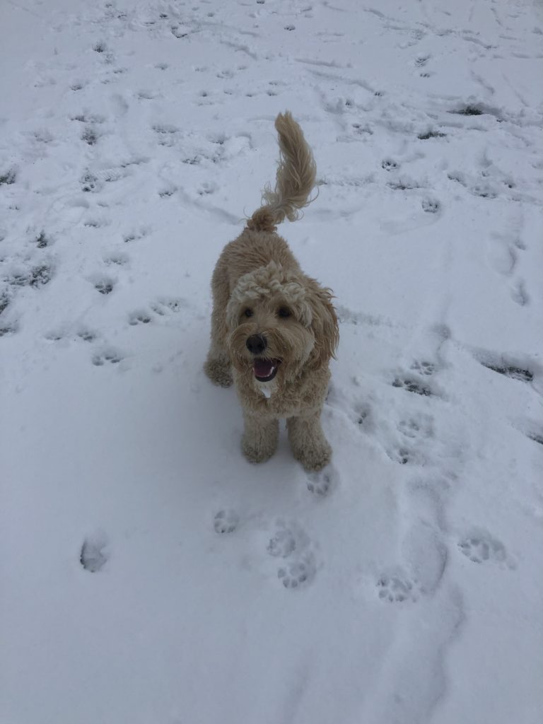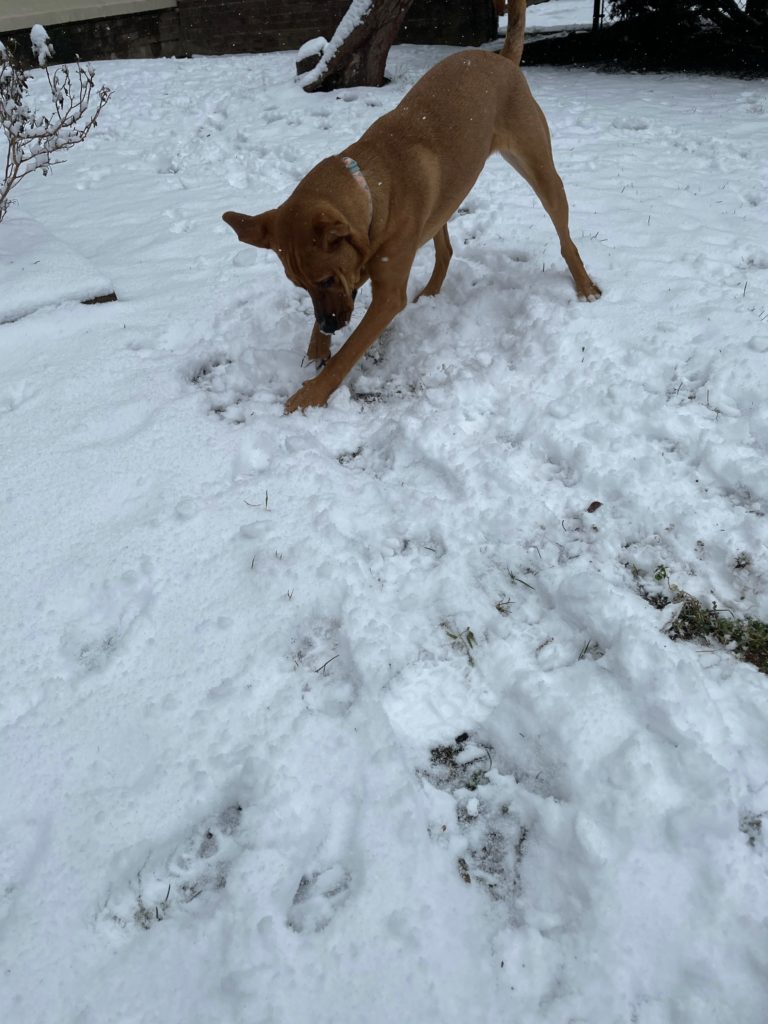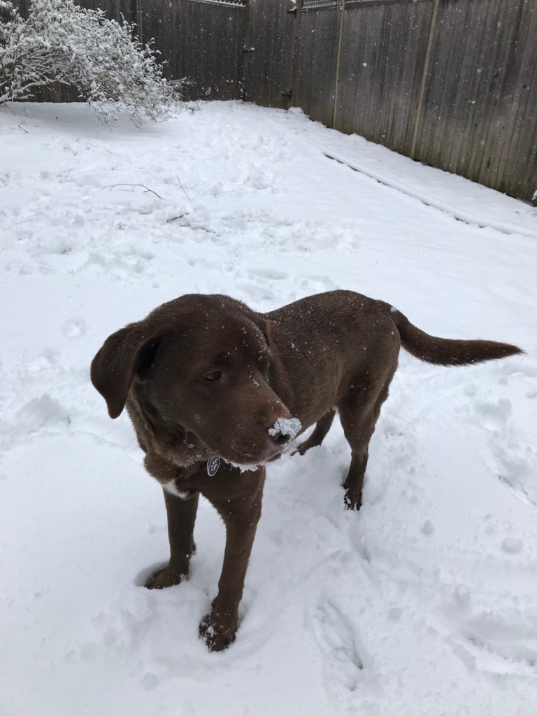 “Apollo’s first snow. He loved it. Then hated it. Haha”