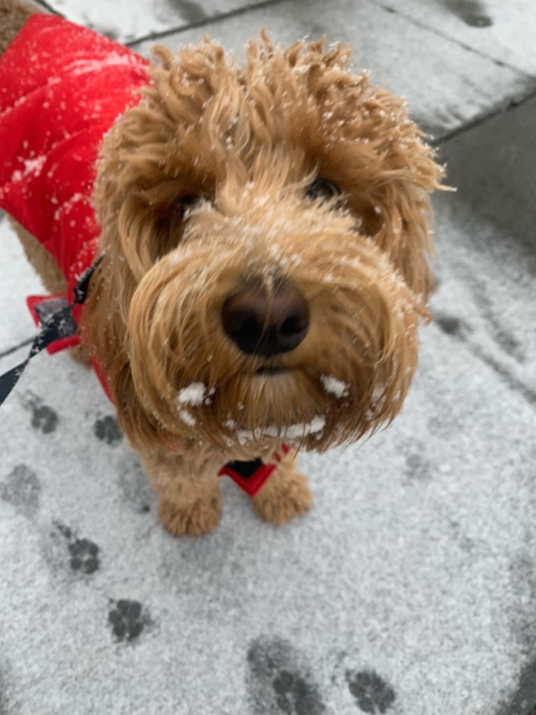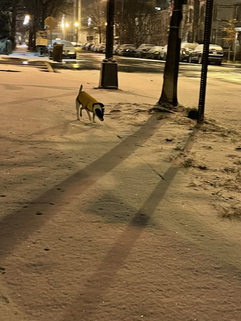 “Here’s a photo of Kirby enjoying the early snow this morning in Logan Circle.”