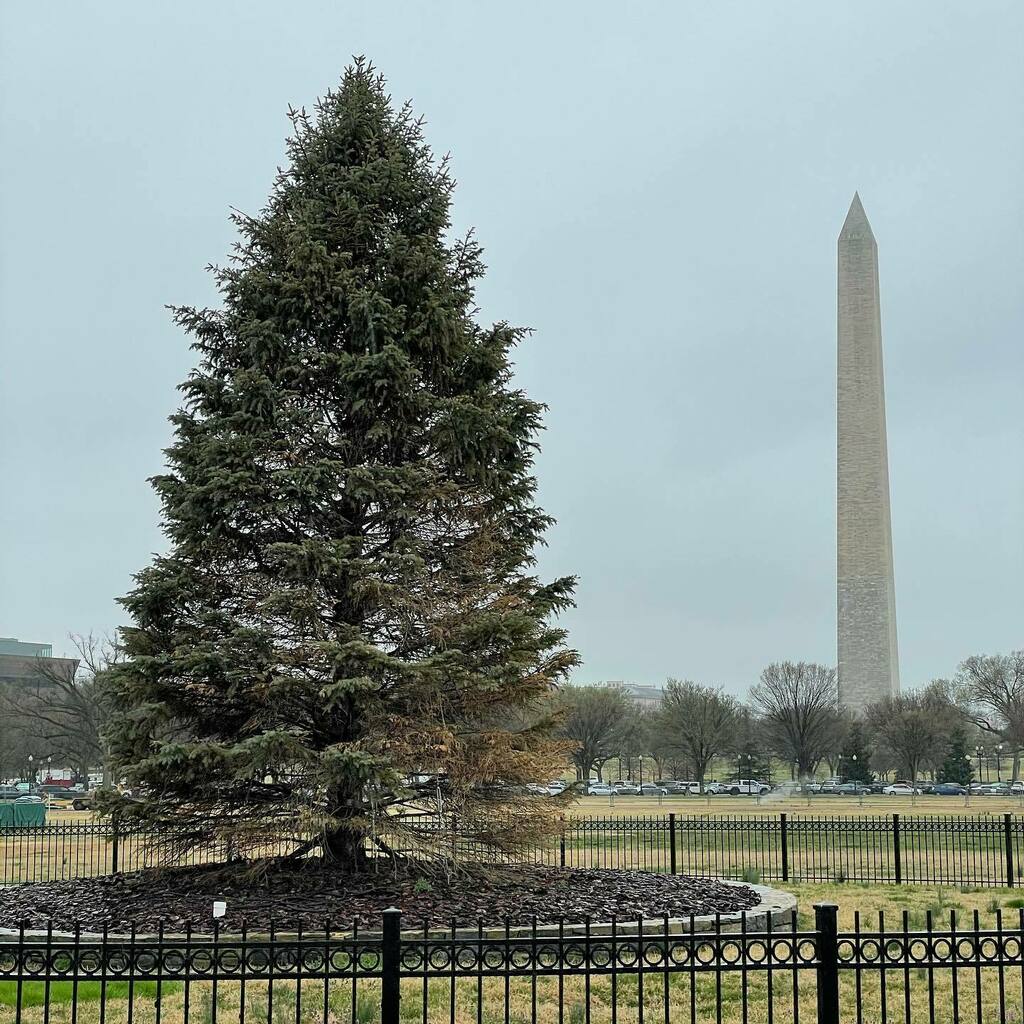 Thanks to Andrew for this morning’s update: “Went to visit the National Christmas Tree this morning for first time in months since White House fences closed access. Kind of a bit brownish. Needs some attention after a few months alone.”