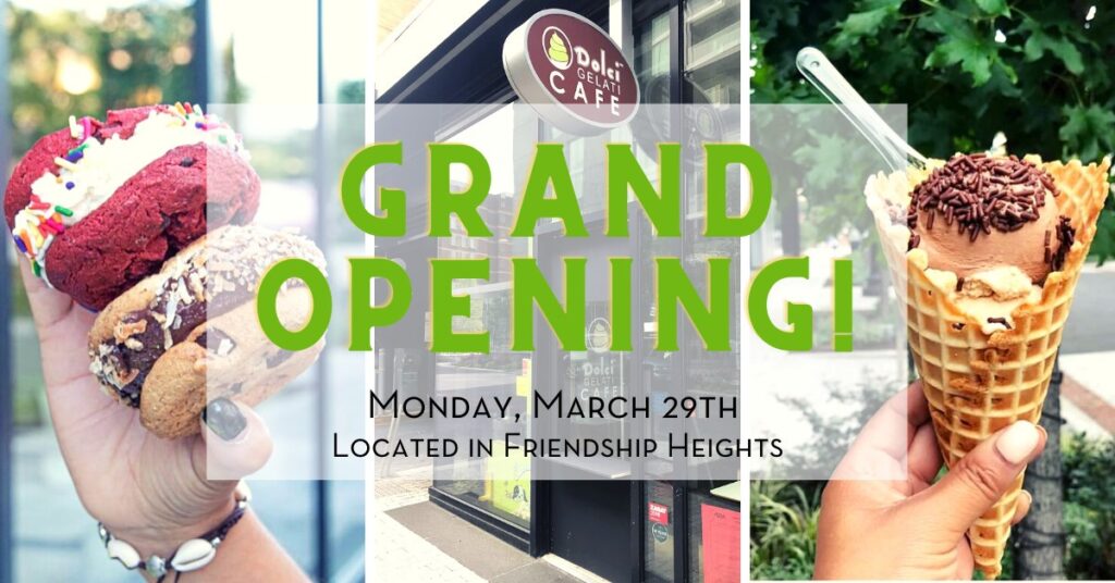 “GRAND OPENING is here. On Monday, March 29th, we’re opening our new location! We’ll be serving FREE gelato cups from 2-9PM.”
