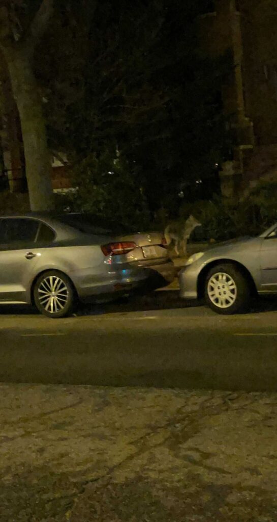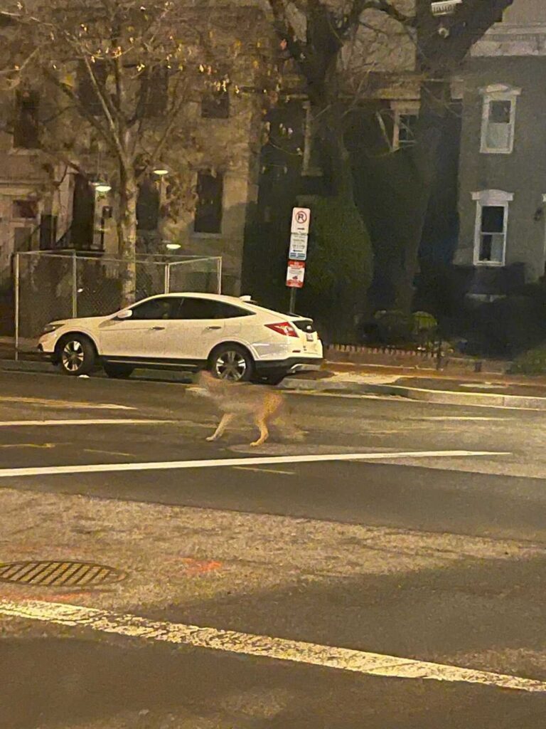 Thanks to ko for sending: “Saw this wolf or coyote roaming around capitol hear on Maryland Ave and 8th St, NE last night in front of my house”