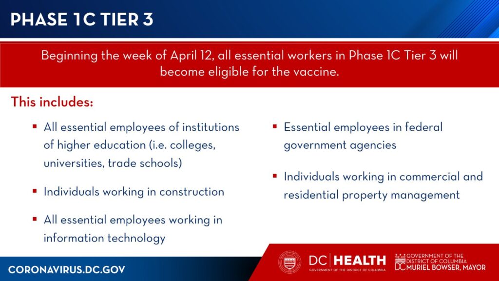 “UPDATE: On Monday, April 19, all DC residents 16 and older will be eligible for the COVID-19 vaccine.