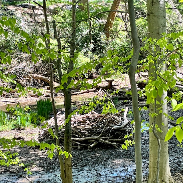 We stumbled upon this giant nest (approx 15 ft wide) while hiking along the north side of the Melvin C. Hazen Trail. Any information on who built it and why?”