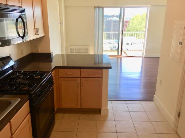 NEW PRICE! NO APPLICATION FEE! Rare Studio with 10-foot ceilings in the heart of the Waterfront/Wharf and an amazing huge private balcony on the top (8th) floor. Recently renovated. East exposure offers loads of light and unbelievable views of the sunrise; private balcony looks overtop of all surrounding buildings for unobstructed views of the Capitol Dome, Nats Park, and city vistas for miles. Gorgeous brand new hardwood floors, new HVAC system, large updated kitchen with black appliances, breakfast bar, and ceramic tile floor. Unit has multiple closets and includes a separate large storage unit. Steps to 3 Metros, Safeway, Starbucks, CVS, Arena Stage, Waterfront/Wharf, Nats Park, and more. Building offers 24-hour concierge/front desk, fitness center, swimming pool, business center, community room, and more. Rent includes all utilities (except phone & cable). This is a must see unit in an unbeatable location! Minimum year lease.”