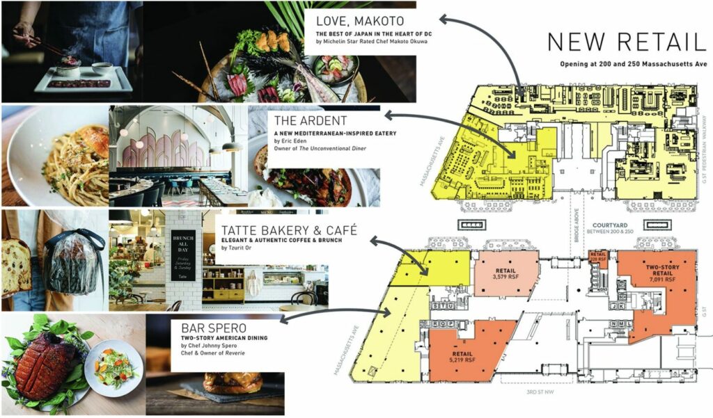 Restaurants coming are Love, Makoto, The Ardent, Tatte Bakery & Cafe, and Bar Spero: