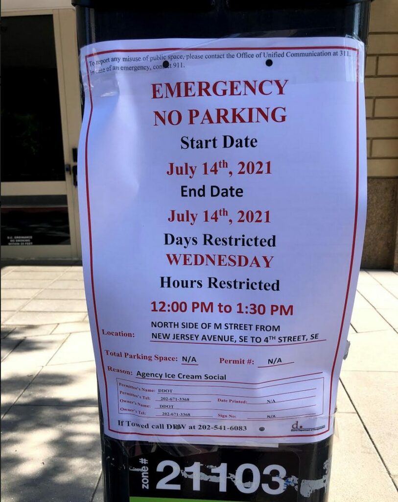 DDOT has a lane closure of 4 blocks for an ice cream social according to the permit.