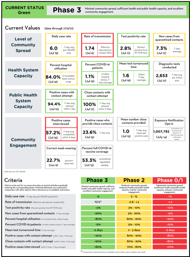 “The District’s reported data for Tuesday, July 20, 2021 includes 31 new positive coronavirus (COVID-19) cases, bringing the District’s overall positive case total to 49,858.