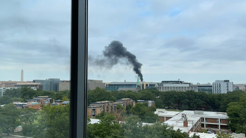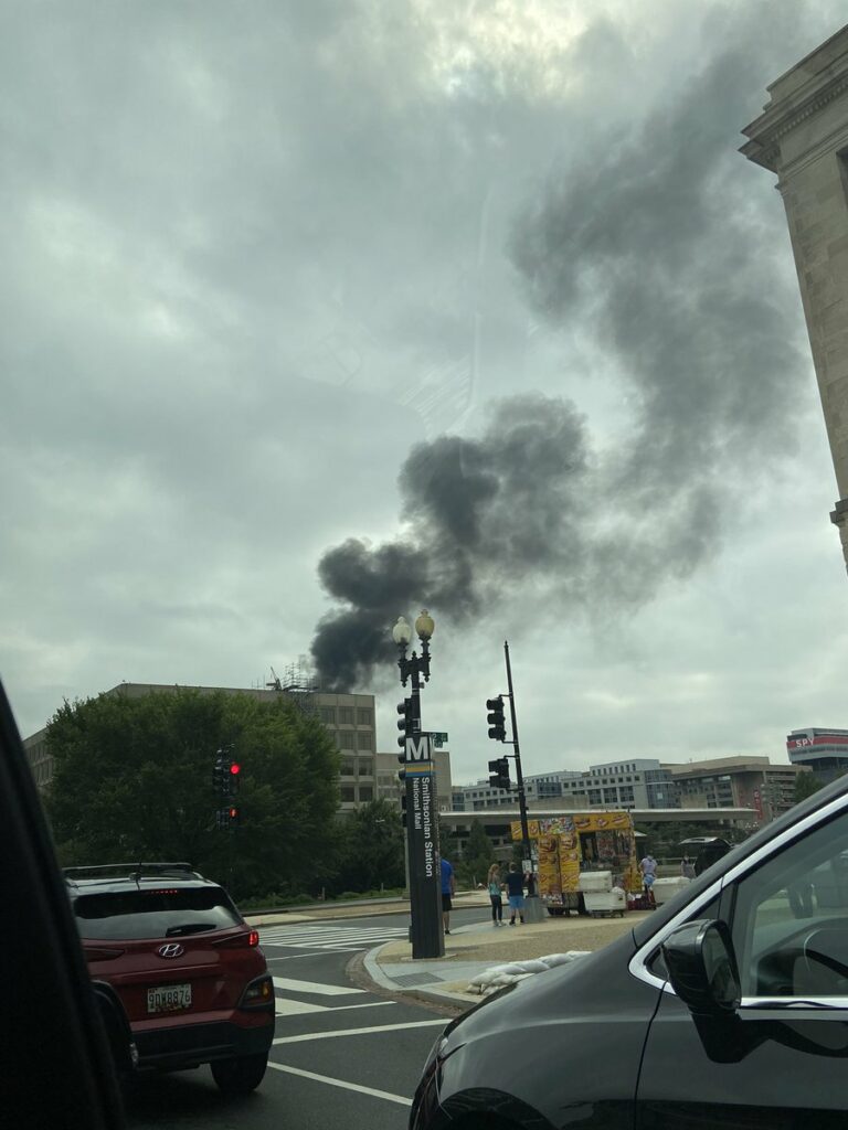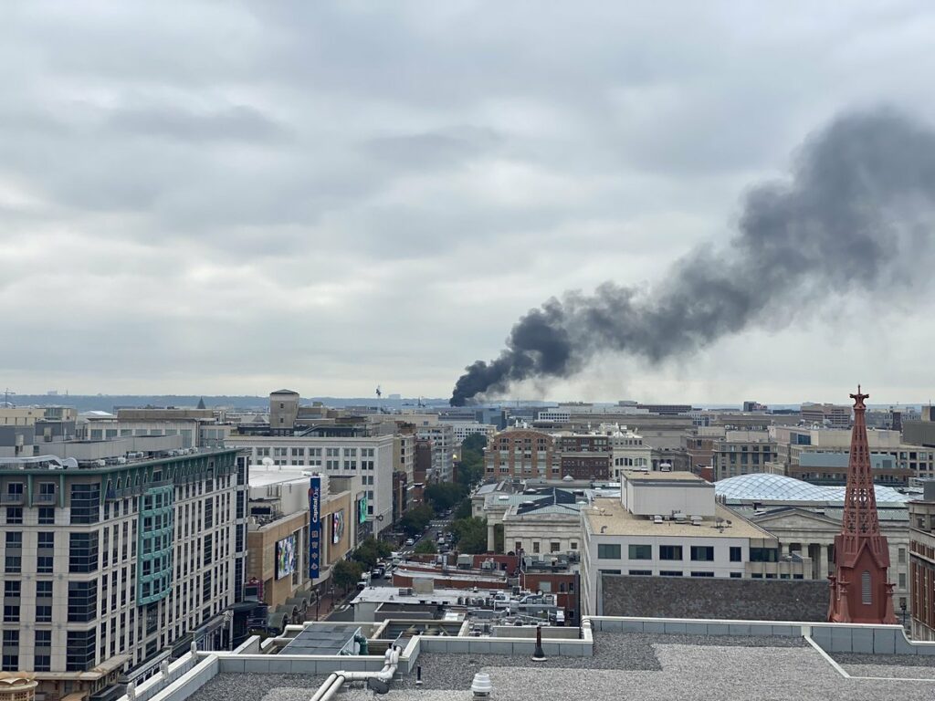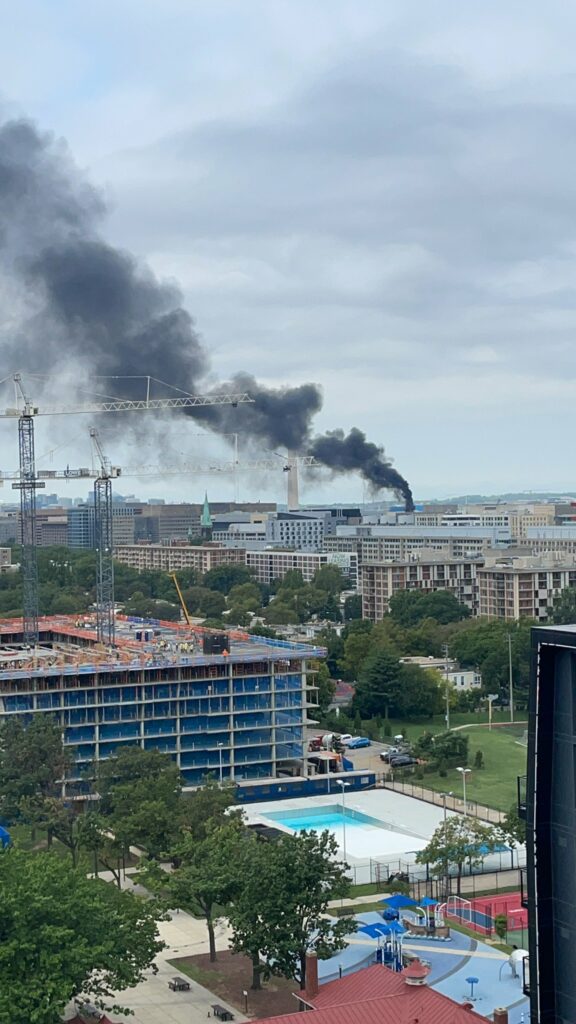 “Working Fire 7th &D Sts SW. fire on the roof of a hi-rise building under construction.”