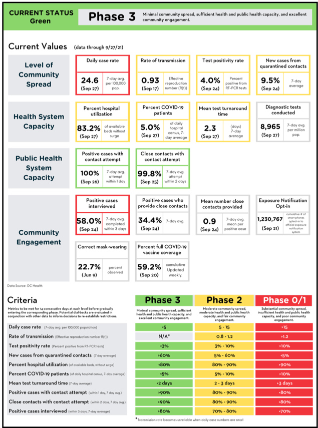 “The District’s reported data for September 28, 2021 includes 98 new positive coronavirus (COVID-19) cases, bringing the District’s overall positive case total to 60,996.