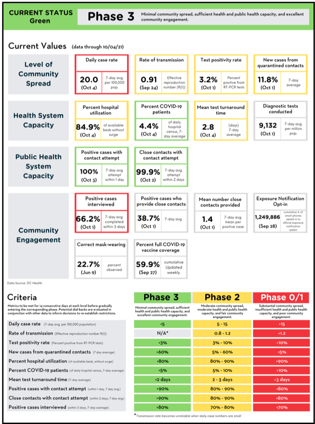“The District’s reported data for October 5, 2021 includes 115 new positive coronavirus (COVID-19) cases, bringing the District’s overall positive case total to 61,978.