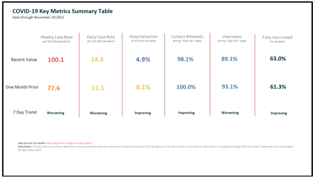 “The District’s reported data for November 24-28, 2021 includes 236 new positive coronavirus (COVID-19) cases, bringing the District’s overall positive case total to 66,857.