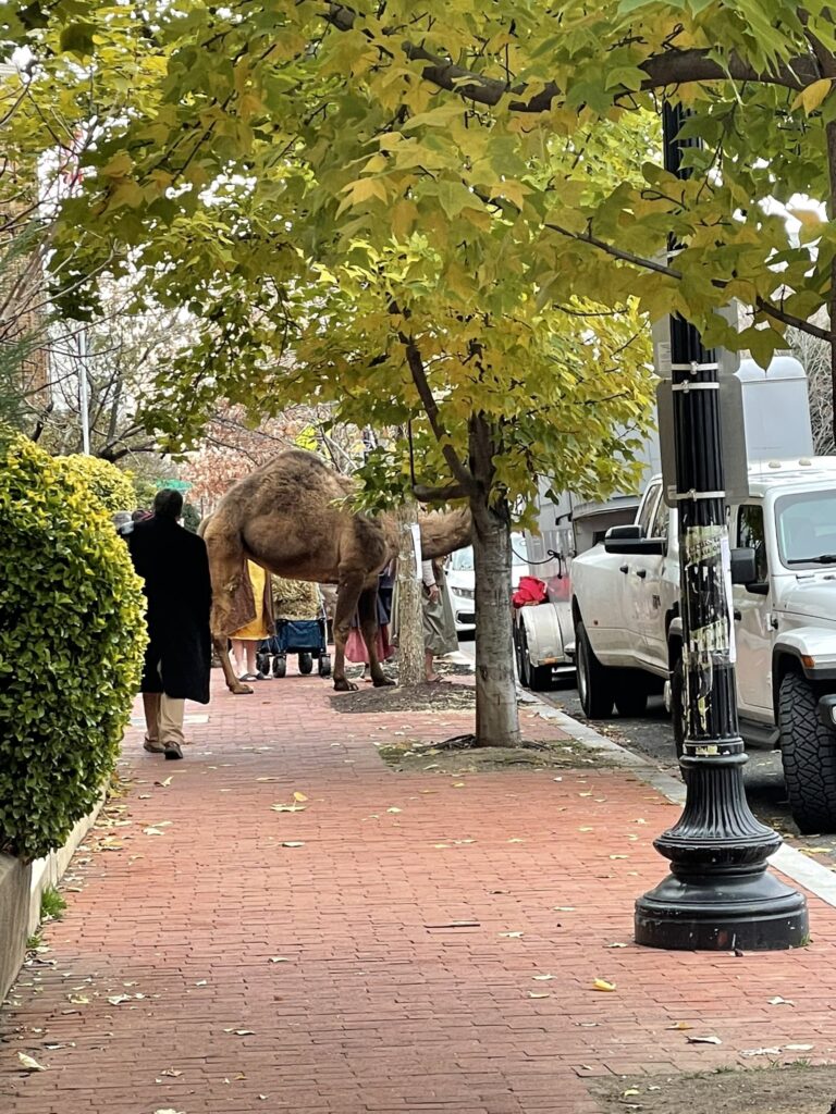 Thanks to Chloe for sending from earlier this morning: “a group was setting up a nativity scene or something because there were goats, donkeys, and people dressed like shepherds”