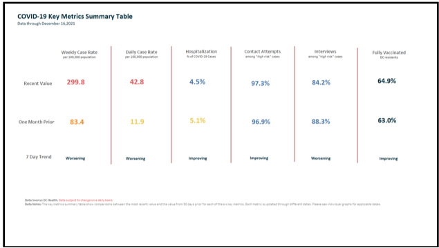 “The District’s reported data for December 16, 2021 includes 844 new positive coronavirus (COVID-19) cases, bringing the District’s overall positive case total to 71,219.